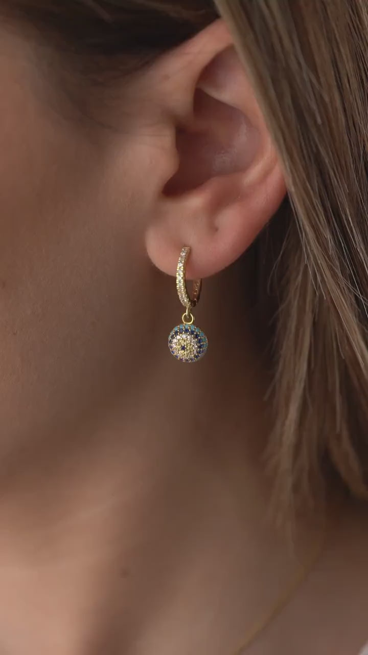 Subtil et chargé de symbolique, l'ensemble Ayn met en lumière l'œil protecteur dans une version précieuse et lumineuse. Son pendentif rond, pavé de zircons blancs, bleus et turquoise, reflète délicatement la lumière tout en incarnant la protection et la chance. Monté sur une fine chaîne en argent plaqué 925 ou 18 carats et des boucles en argent, ces bijoux allient sens et élégance dans un style raffiné.